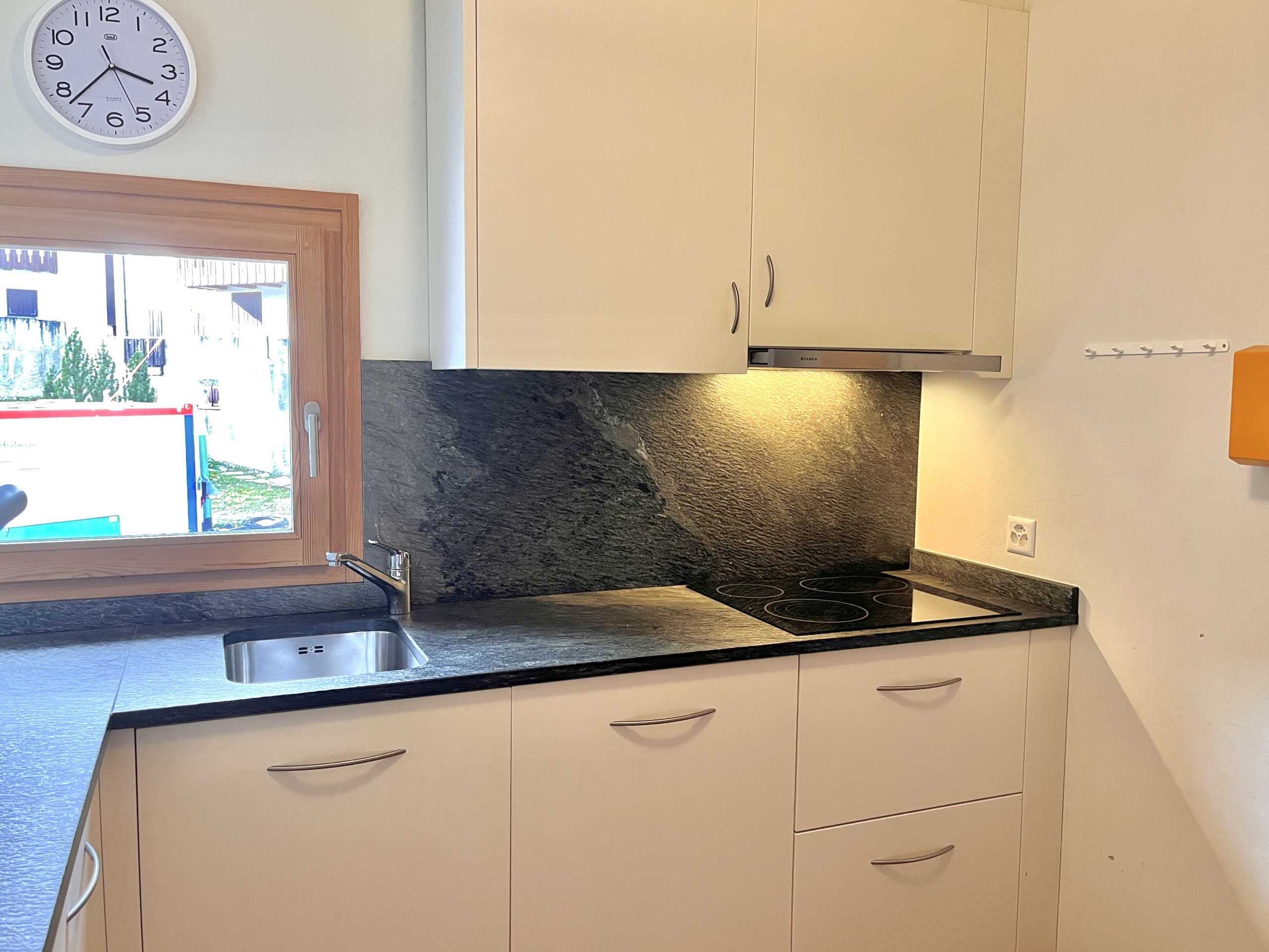 Appartamento romantico di 110 m² situato al primo piano di un condominio nella parte alta e tranquilla di Celerina/Schlarigna, a pochi passi dal centro. L’ingresso si apre su una zona giorno luminosa con salotto e tavolo da pranzo che si affaccia su un balcone con vista sulla montagna. La cucina è indipendente, a induzione e completamente attrezzata con frigorifero, forno, congelatore, lavastoviglie, utensili, macchina da caffè Nespresso e tostapane.