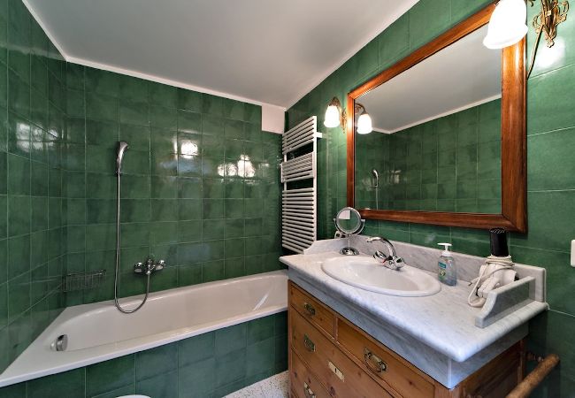 Al secondo piano: tre camere da letto con letti singoli e bagno con vasca.