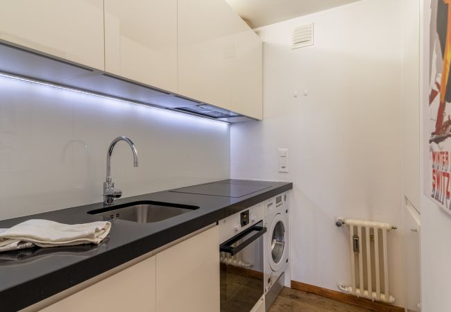 Un ampio e luminoso open space costituisce la zona giorno, con accesso diretto a un balcone dal quale si può ammirare lo splendido panorama del Lago di St. Moritz. La cucina, separata e funzionale, è dotata di forno e lavastoviglie, perfetta per chi ama cucinare anche in vacanza.