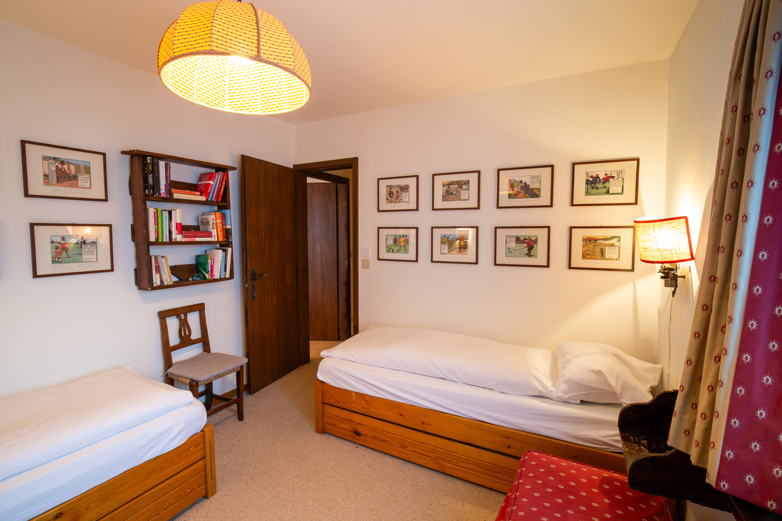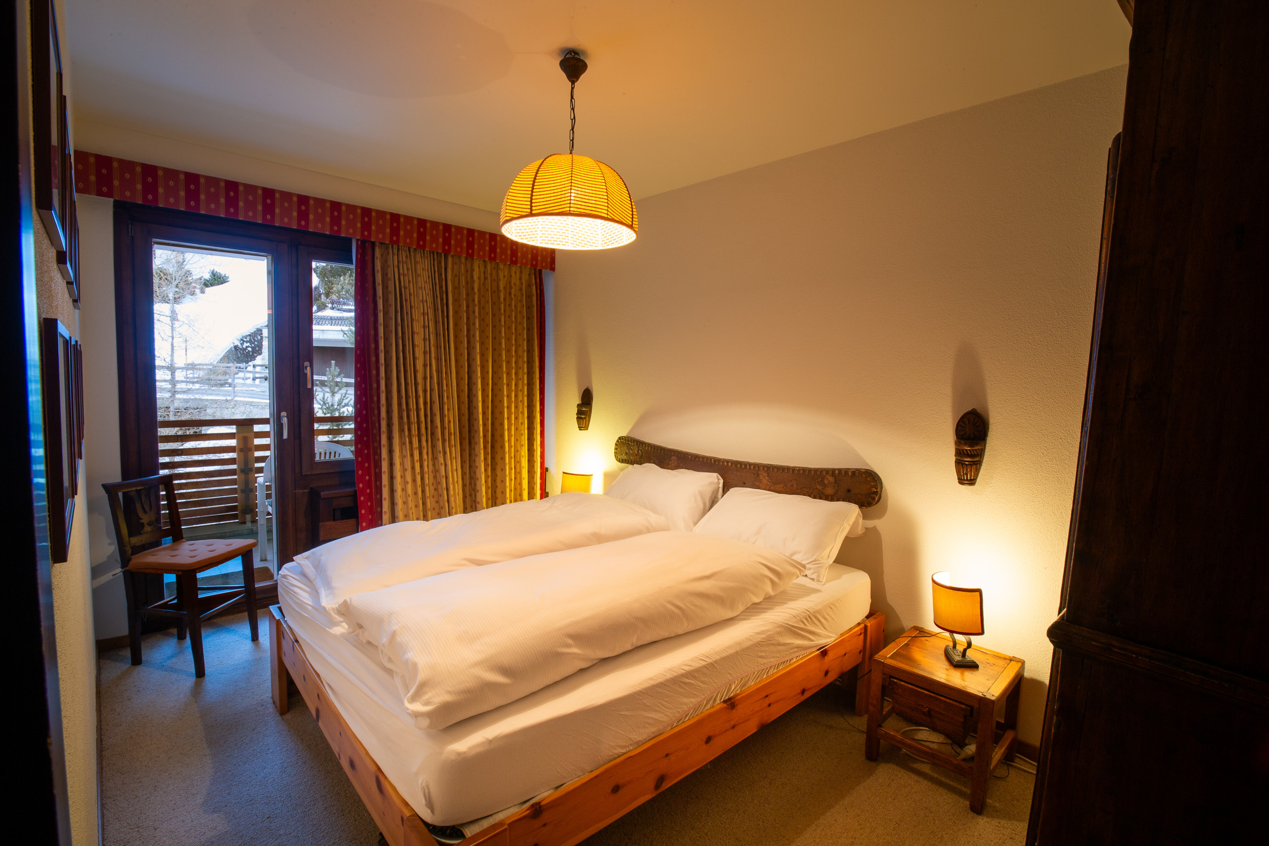 L’appartamento è situato all’ultimo piano di Chesa Arlas e si sviluppa su un unico livello, dove il salotto e la zona pranzo si fondono in un ambiente luminoso e accogliente, impreziosito da una magnifica vista sulle montagne circostanti. La cucina, separata dalla zona giorno, è completamente attrezzata con forno, frigorifero, piano cottura e lavastoviglie. La zona notte è composta da due camere da letto, entrambe dotate di TV, e da un bagno con vasca. Gli ospiti avranno a disposizione anche un bollitore, una macchina da caffè Nespresso, un apparecchio per Raclette e uno per Fondue, per vivere appieno l’atmosfera alpina.