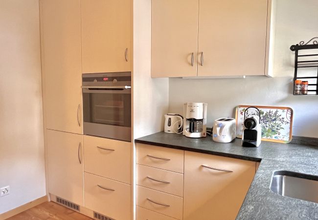 Die Küche ist separat und gut ausgestattet, mit Backofen, Mikrowelle, Geschirrspüler, Kühlschrank, Gefrierschrank, Nespresso-Kaffeemaschine, Wasserkocher und Toaster, und bietet alles Notwendige, um praktisch und angenehm zu kochen.