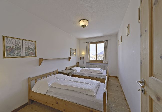 Die Wohnung in Chesa Chamuotsch ist eine Zweizimmerwohnung von etwa 40 m². Sie verfügt über ein Wohnzimmer mit Essbereich und zwei ausklappbaren Einzelbetten. Offene Küche. Vom Wohnzimmer aus hat man Zugang zum Balkon, der nach Westen ausgerichtet ist.