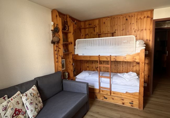 Diese gemütliche und funktionale Zweizimmerwohnung ist ideal für ein Paar oder eine kleine Familie. Der Schlafbereich ist in den Wohnbereich integriert: Das Wohnzimmer beherbergt ein Sofa, das sich in ein Bett verwandelt und bietet eine flexible Übernachtungsmöglichkeit. Der Wohnraum besteht auch aus einer voll ausgestatteten Küche (mit Ofen, Kühlschrank und Geschirrspüler) und einer Essecke mit Tisch für vier Personen, perfekt vereint in einem einzigen, hellen Raum.