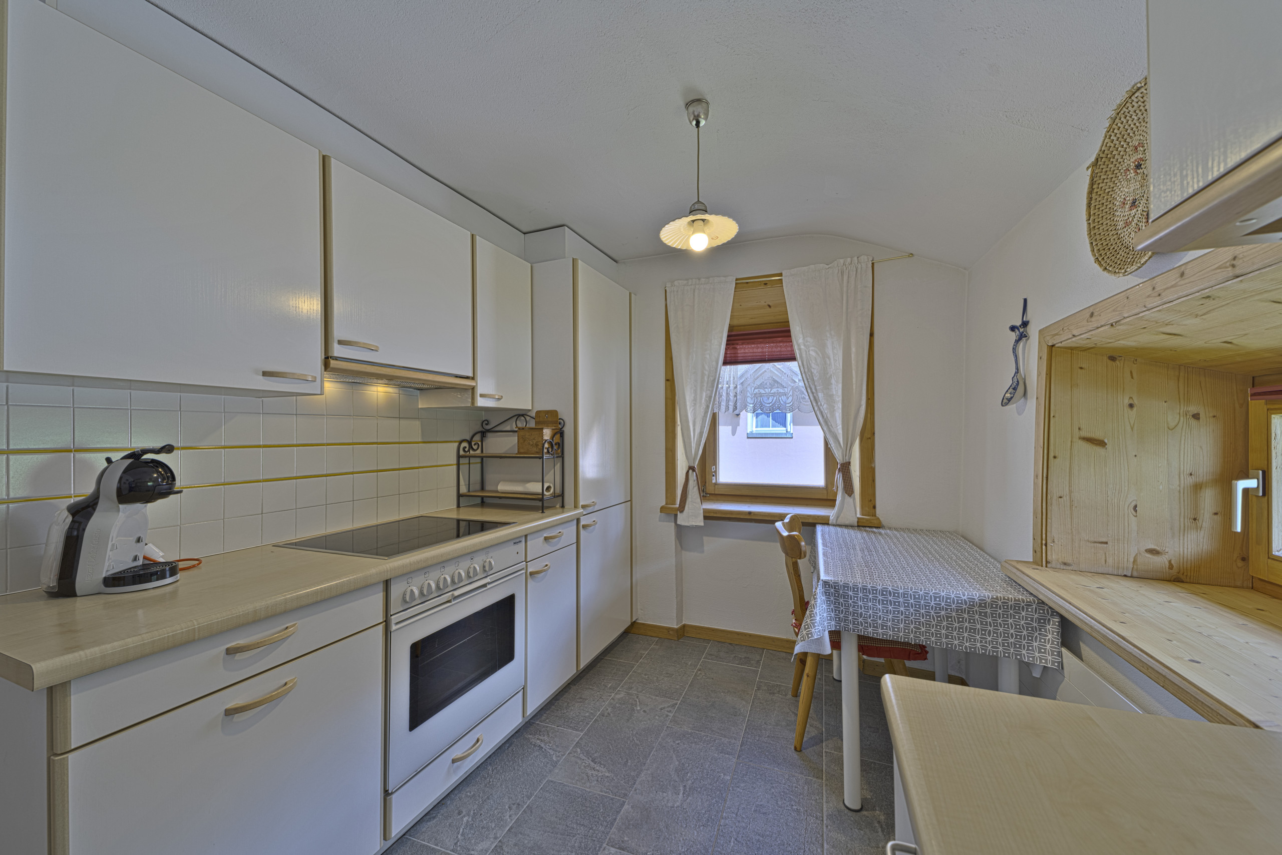 The first-floor apartment, accessible only by stairs, has three bedrooms, one double, one single and one with bunk beds. There are two bathrooms and kitchen. Stube with tiled stove and bowindo from which to admire the valley.
