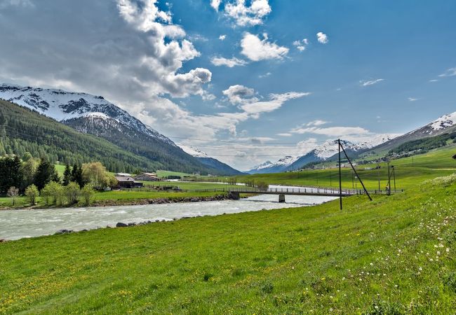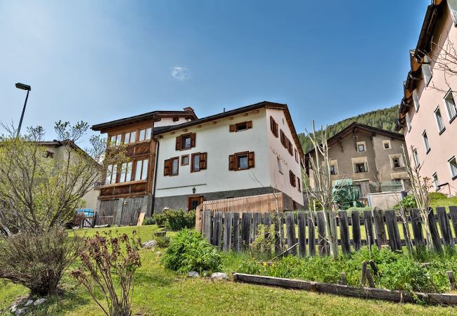 Chesa Violetta is located in the historic center of S-Chanf. It is a 70-square-meter apartment in an old Engadine house. It overlooks the Inn River and the mountains of the Swiss National Park.
