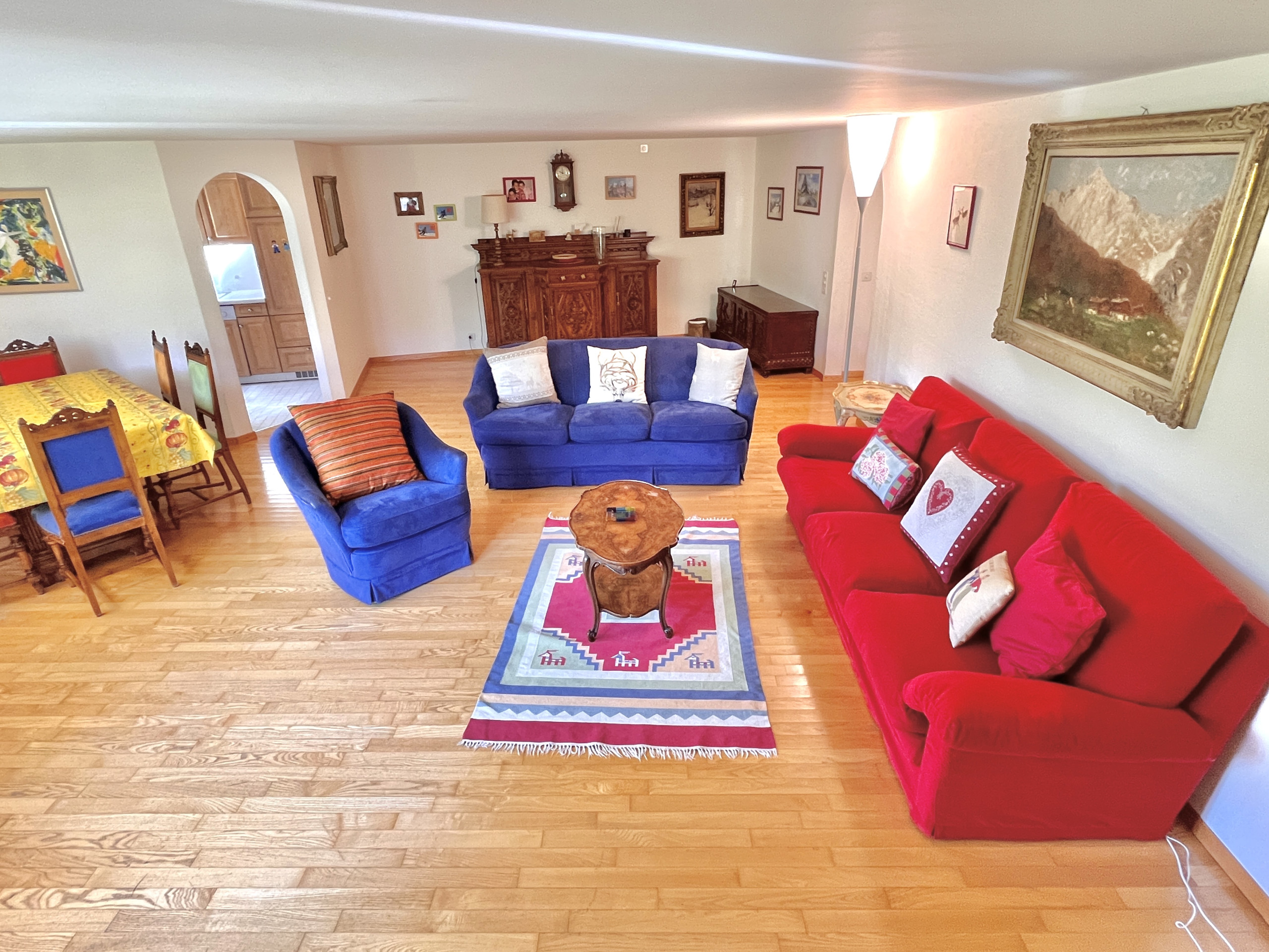 Chesa Chavriol is a 70 sqm apartment with a separable dining and living room area. The living room has two sofas that become single beds, a habitable kitchen with its own table, a double bedroom, a room with bunk beds and a desk area, a bathroom with bath/shower, WC and bidet. The apartment has a south-west facing balcony. -