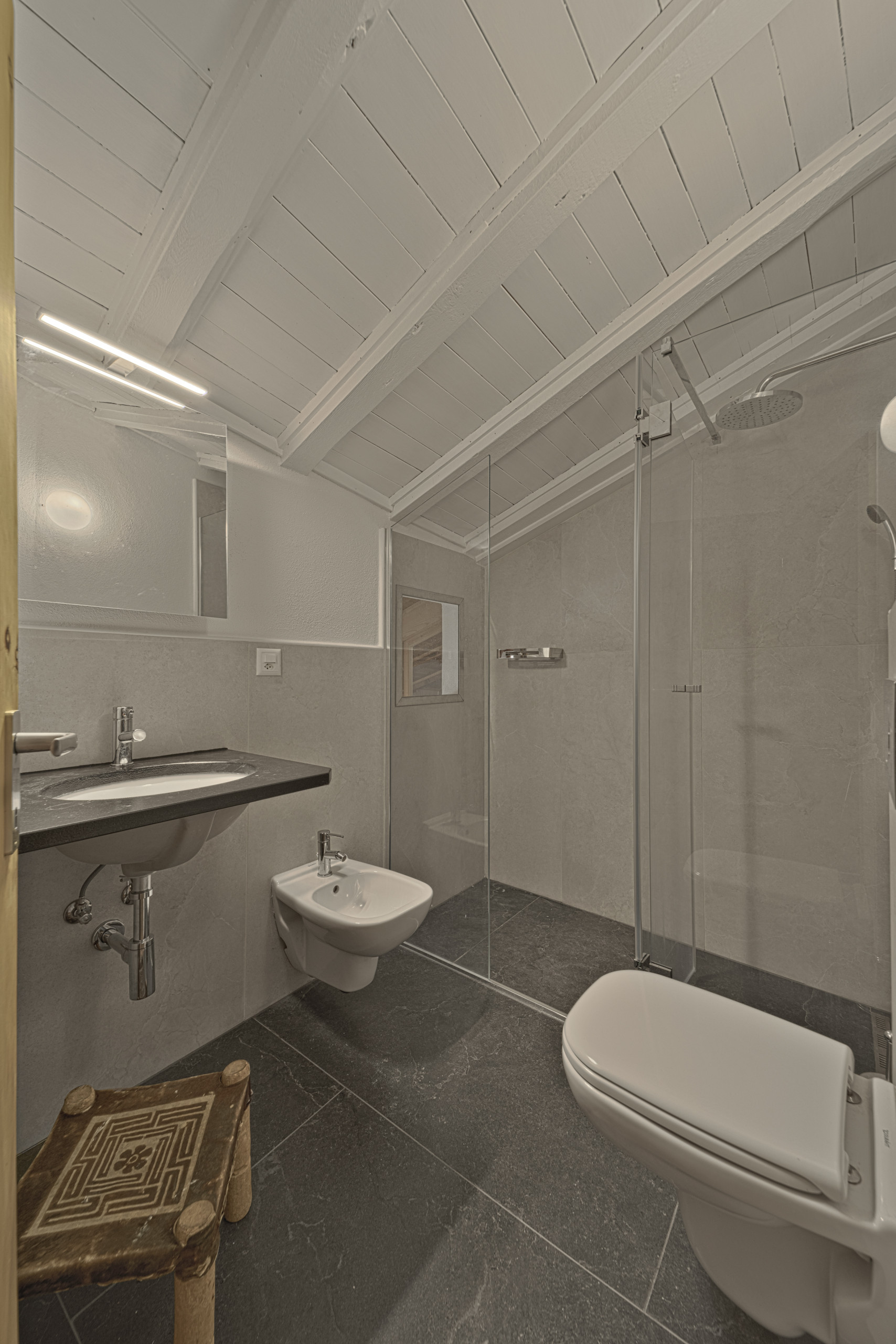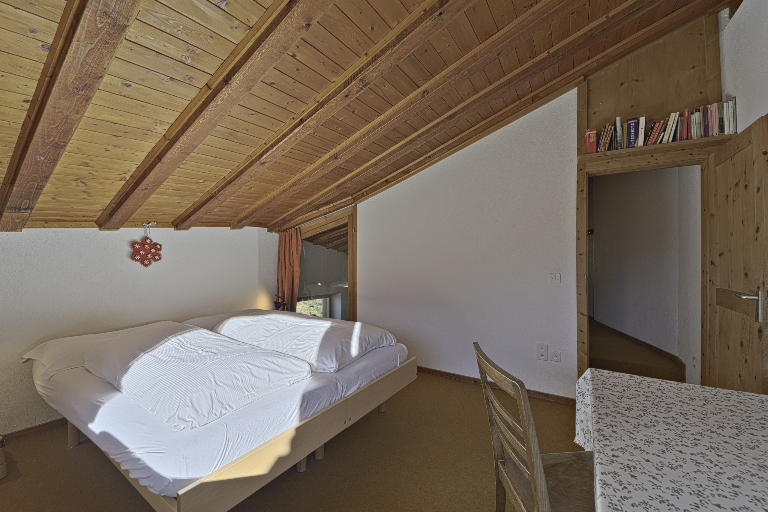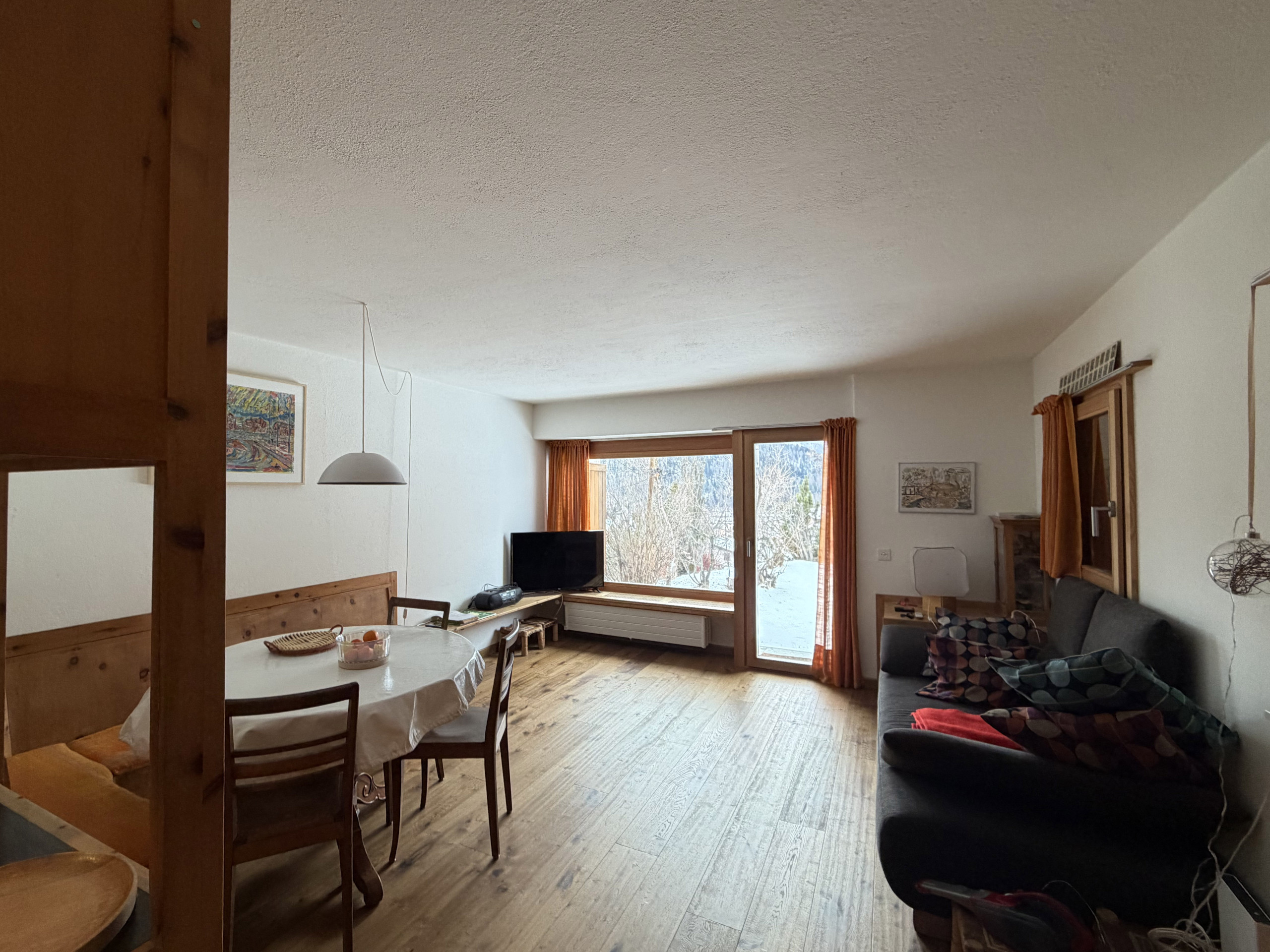 Chesa Prasura is a welcoming and bright apartment of about 90 m² spread over two floors, with independent entrance and a warm and familiar atmosphere. On the ground floor you will find a spacious living area with direct access to the south-facing garden, ideal for relaxing in the sun or enjoying an evening in company. The modern open-plan kitchen overlooking the dining room is fully equipped with an induction hob, dishwasher and oven, perfect for preparing delicious breakfasts or convivial dinners. Also on the ground floor is a single room with a private bathroom equipped with a shower and washing machine. On the upper floor, you will find a double bedroom with a panoramic balcony and a second room with two single beds, as well as a bathroom with a shower.