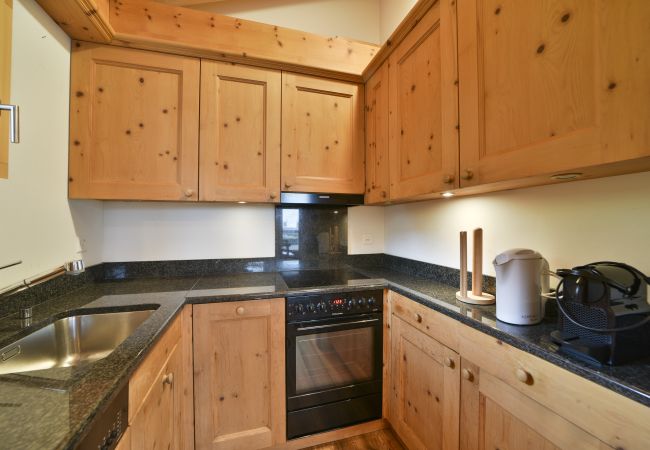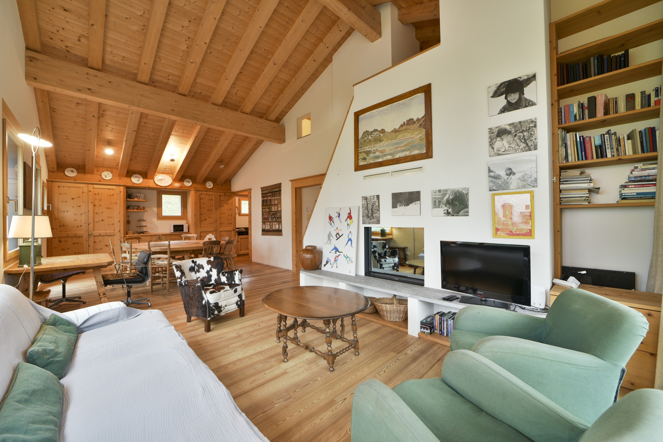 The living area is a spacious and bright open space, characterised by large windows with mountain views. Here you will find the living room, a spacious dining area and a fully equipped kitchen with oven, dishwasher and microwave. Nespresso coffee machine compatible with standard capsules (capsules not provided).