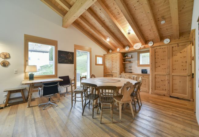Chesa Pino is a multi-family house located in an extremely convenient position: the Madulain railway station is just 400 metres away and the bus stop is located 300 metres away. Ski enthusiasts can reach the Marguns ski facilities in Celerina in about 13 kilometres, while St. Moritz is only 15 kilometres away.