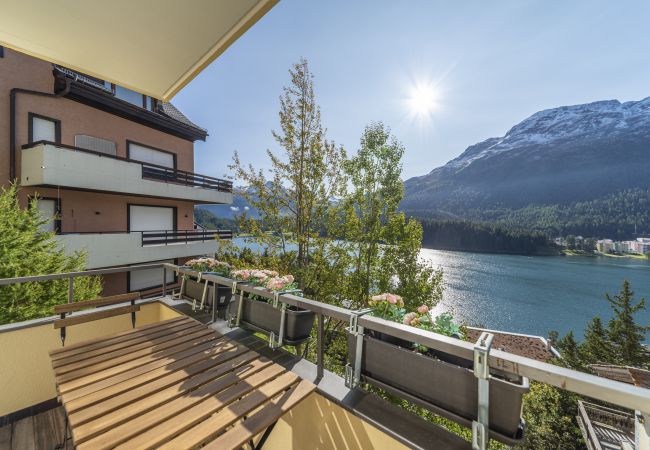 A spacious and bright open space constitutes the living area, with direct access to a balcony from which one can admire the splendid panorama of Lake St. Moritz. The kitchen, separate and functional, is equipped with an oven and dishwasher, perfect for those who love to cook even on holiday.