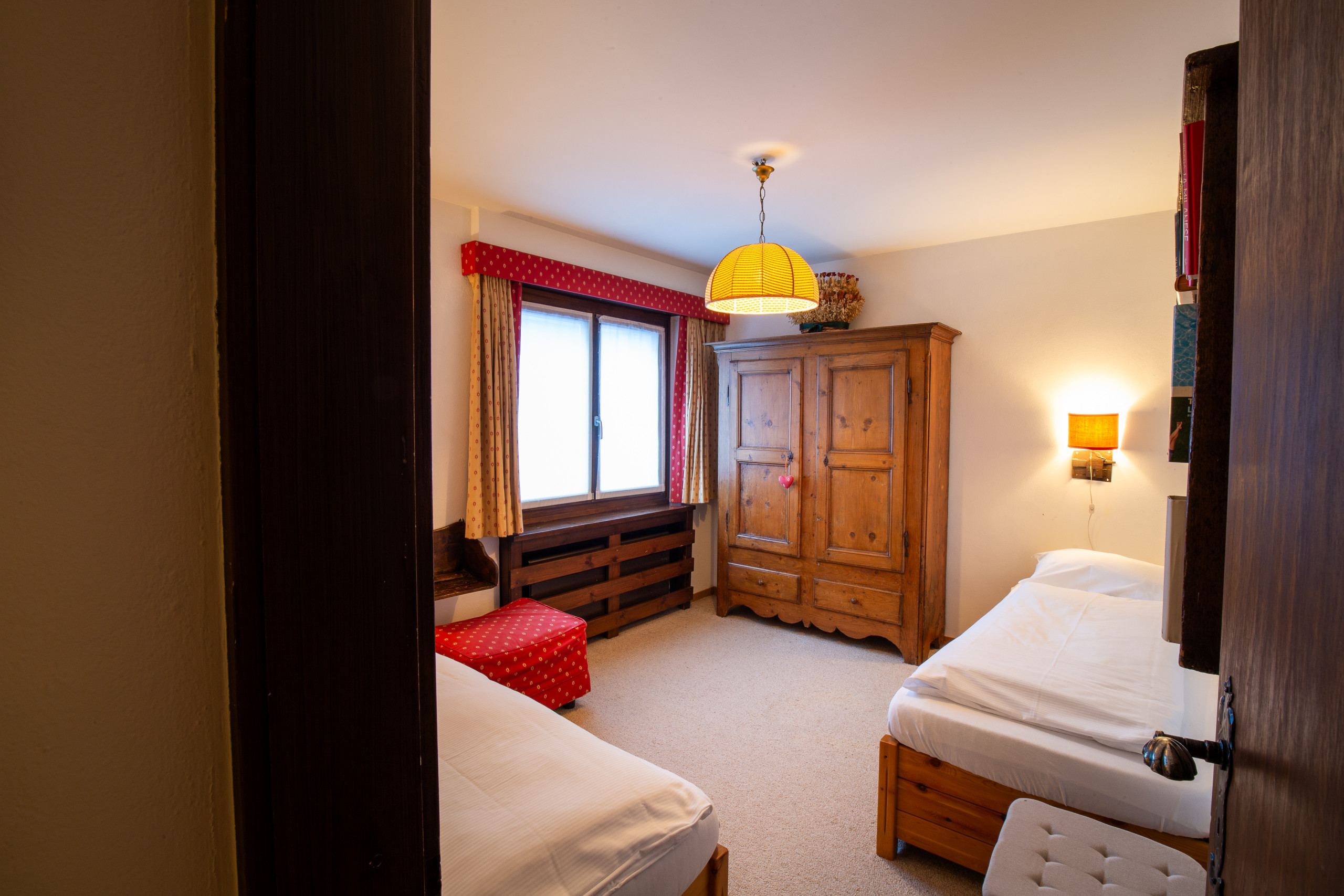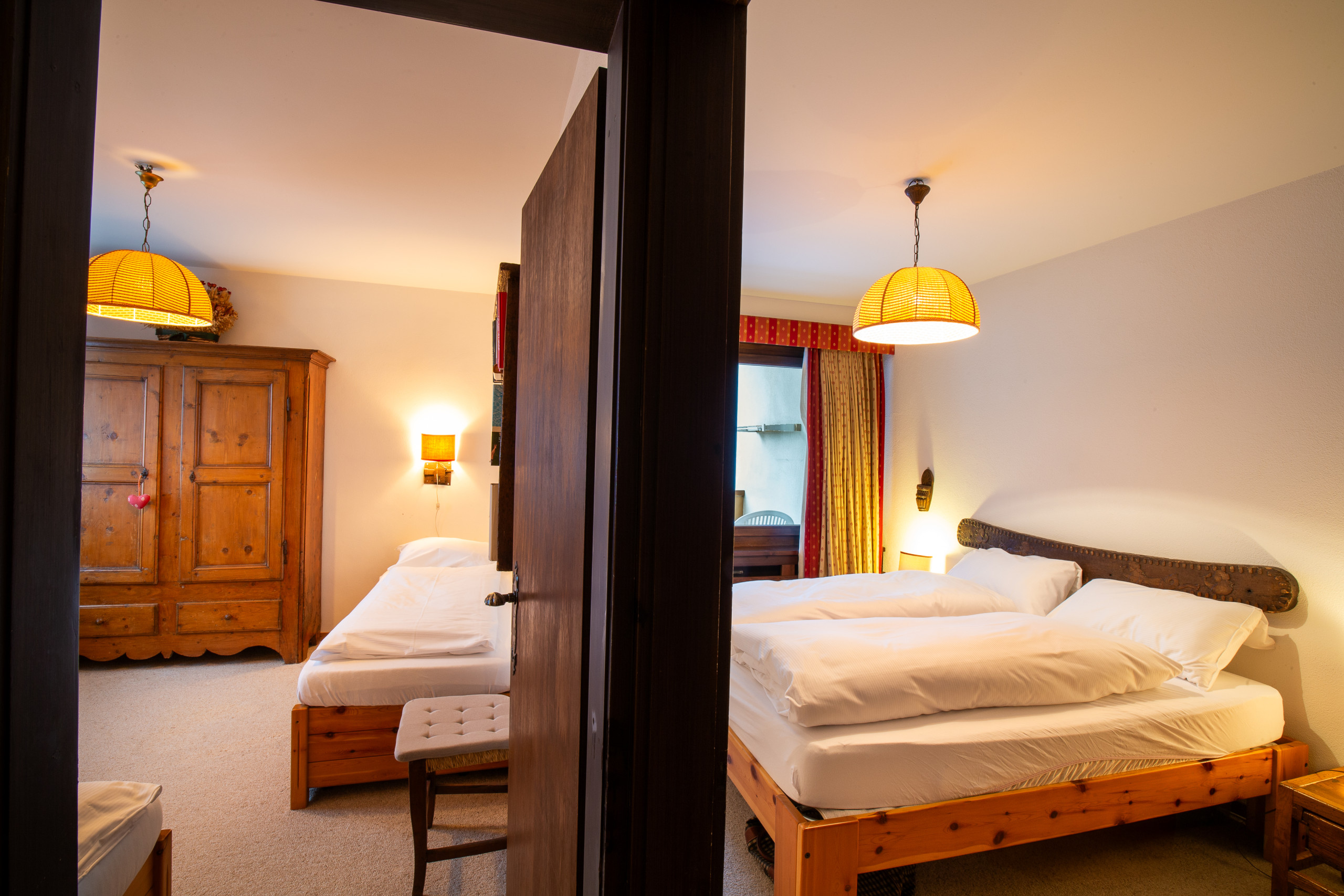 The apartment is located on the top floor of Chesa Arlas and develops on a single level, where the living room and dining area merge into a bright and welcoming environment, enhanced by a magnificent view of the surrounding mountains. The kitchen, separated from the living area, is fully equipped with an oven, refrigerator, hob and dishwasher. The sleeping area consists of two bedrooms, both equipped with TV, and a bathroom with a bathtub. Guests will also have a kettle, a Nespresso coffee machine, a Raclette appliance and a Fondue maker, to fully experience the alpine atmosphere.