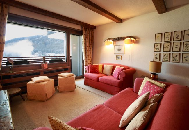 The apartment, 80 m² in size, is located on the fourth floor with an elevator and can accommodate up to four people. It is functional and panoramic, ideal for experiencing St. Moritz with comfort, style, and autonomy.