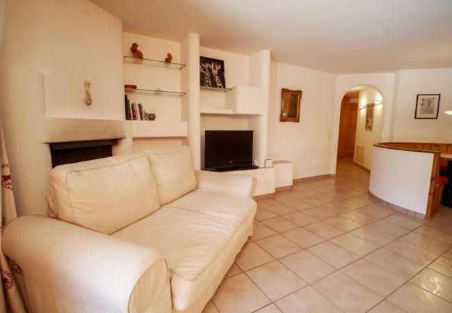 La zone de vie comprend un salon lumineux avec une zone repas et une cuisine américaine entièrement équipée, dotée d'un lave-vaisselle, d'un four et d'un micro-ondes, organisée dans un espace ouvert pratique. Machine à café Nespresso compatible avec des capsules standard (capsules non fournies). Depuis la zone de vie, on accède directement au jardin condominial.