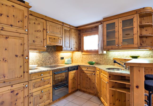 La zone de vie, lumineuse et accueillante, comprend un salon avec un accès direct à une terrasse privée exposée à l'ouest, parfaite pour se détendre au coucher du soleil. La cuisine est habitable et entièrement équipée avec quatre plaques électriques, un four et un lave-vaisselle.