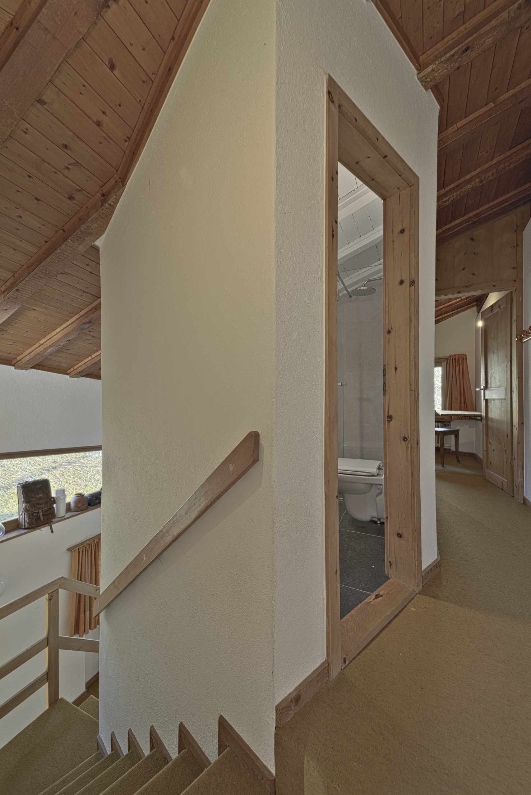 Chesa Prasura est un appartement chaleureux et lumineux d'environ 90 m² réparti sur deux étages, avec une entrée indépendante et une atmosphère chaleureuse et familiale. Au rez-de-chaussée, vous trouverez une spacieuse zone de vie avec un accès direct au jardin exposé au sud, idéal pour se détendre au soleil ou profiter d'une soirée en compagnie. La cuisine moderne ouverte sur la salle à manger est entièrement équipée avec une plaque à induction, un lave-vaisselle et un four, parfaite pour préparer de délicieux petits-déjeuners ou des dîners conviviaux. Toujours au rez-de-chaussée, se trouve une chambre simple avec une salle de bain privative équipée d'une douche et d'un lave-linge. À l'étage supérieur, vous attendent une chambre matrimoniale avec un balcon panoramique et une deuxième chambre avec deux lits simples, ainsi qu'une salle de bain avec douche.